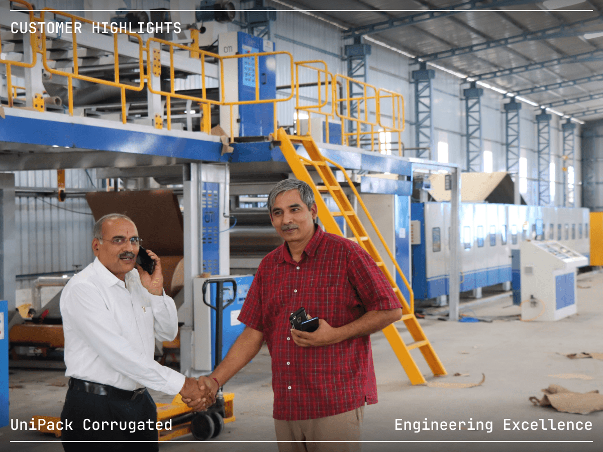 UNICORR brand corrugated board plants deliver consistent quality at production speeds from 150 to 250 m/min. Complete 3-ply, 5-ply, and 7-ply automatic lines engineered for the Indian market. Each plant is backed by comprehensive installation support, operator training, and lifetime technical assistance.